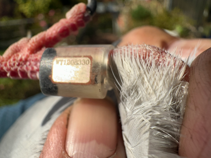 推測可能為家鴿或賽鴿。希望能協助牠盡快回家
